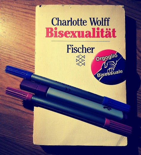 Volete saperne di più? Continuate a seguire il blog, mettete un mi piace ad Orgoglio Bisessuale al link che vi ho messo sopra e a Bproud qui, cliccate anche gli altri magnifici hyperlink che sono riuscita ad inserire nel testo. Il libro in foto è un libro del 77 considerato il primo saggio scientifico attendibile sulla bisessualità, la bandiera bisessuale è del 98, siamo nel 2019 e credo ci siamo capiti.