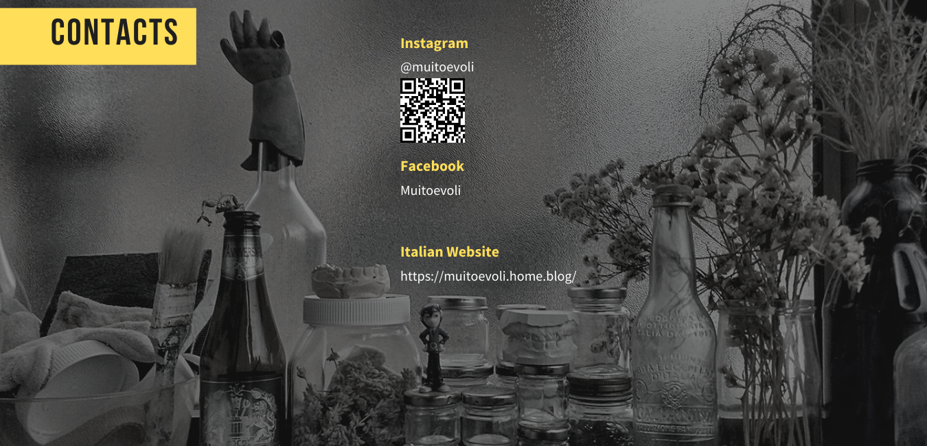 Trovate ogni nuova creazione su Instagram, assieme alla sua storia. Potete verificare nelle stories quando e dove raccolgo il materiale e chiedermi ( più o meno) qualsiasi cosa.